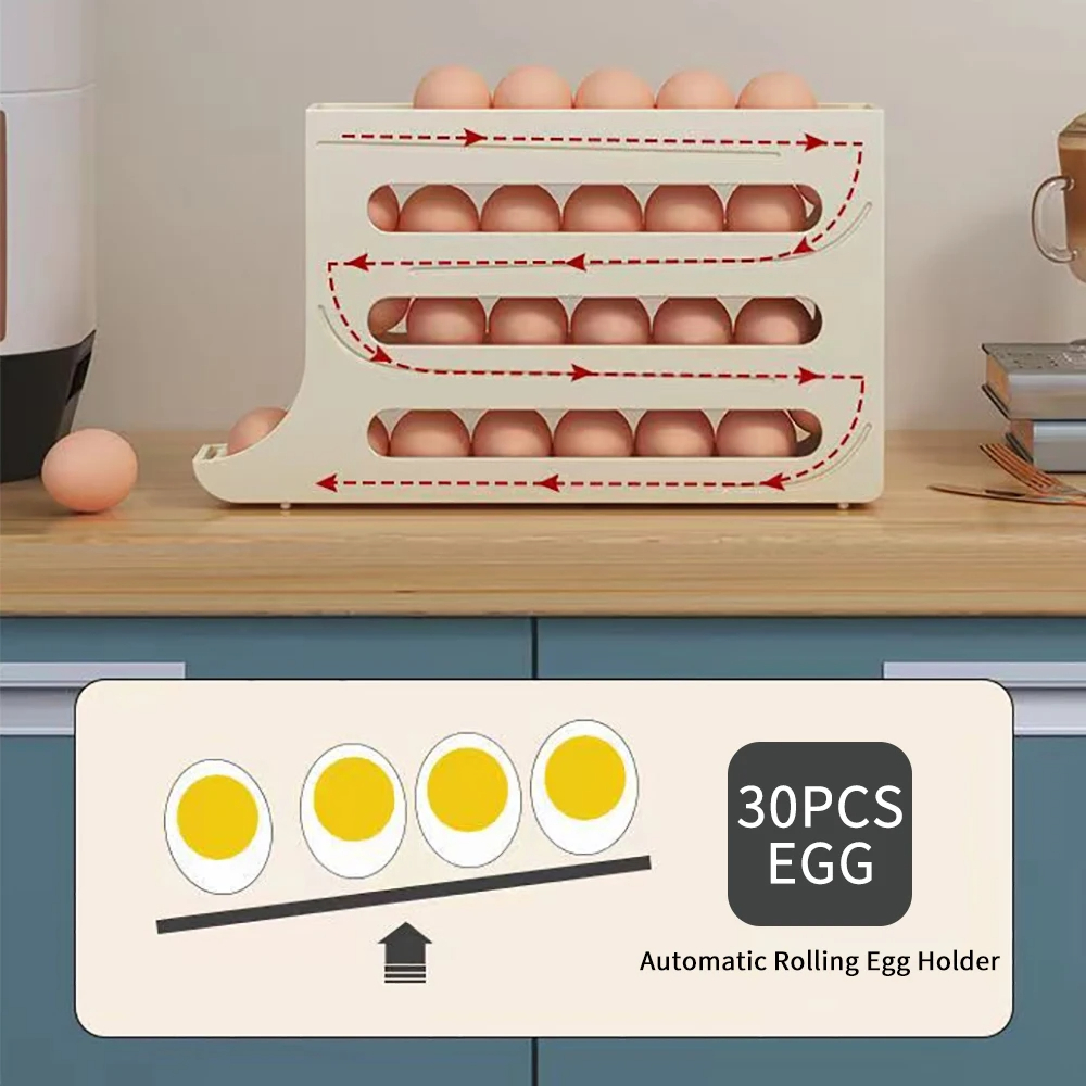 Large Capacity Auto Eggs Rolling Shelf Fridge Egg Storage Box Rack Egg Dispenser for Home Kitchen Organizer